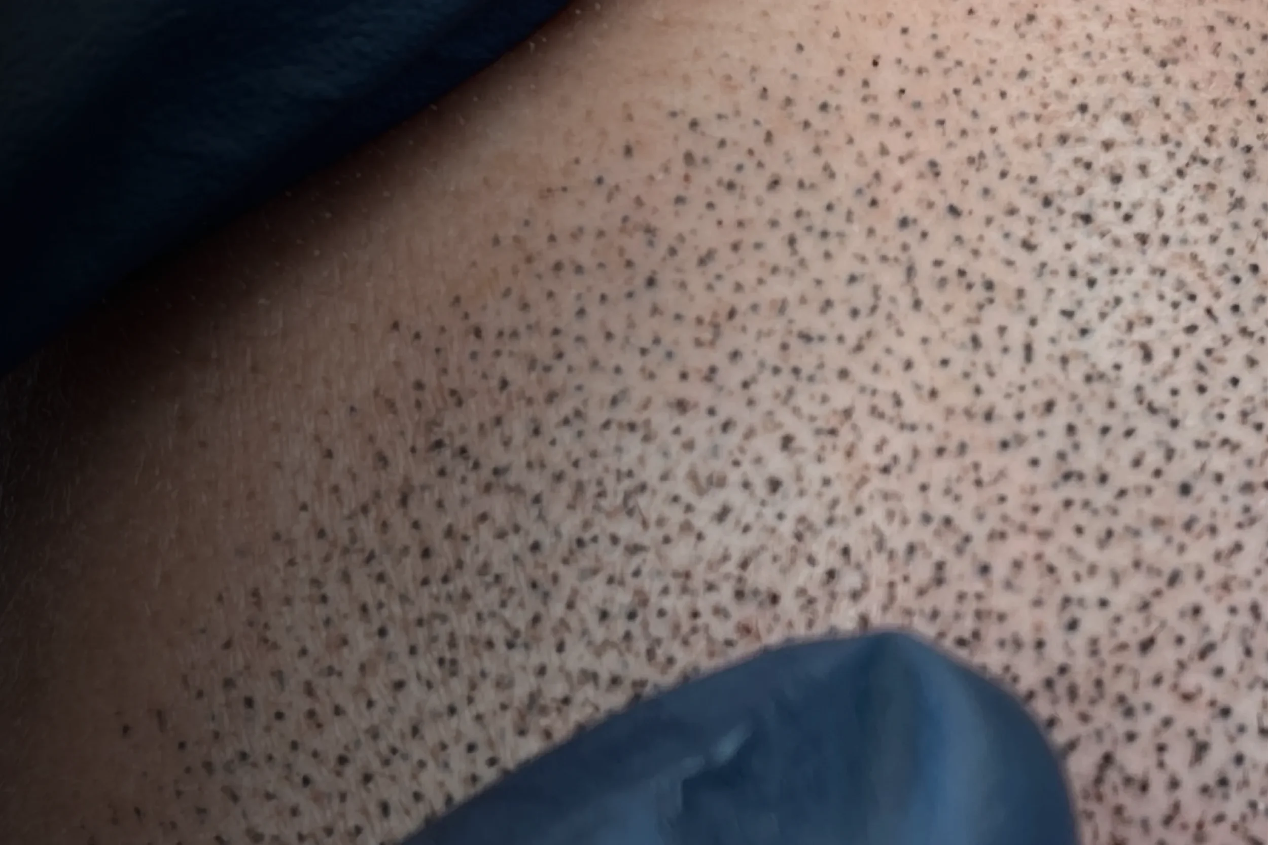Each impression mimics the look of a natural hair follicle, blending seamlessly with your existing hair or restoring a clean, full shaved-head appearance. It’s essentially precision dot work for the scalp - thousands of individually placed impressions forming a natural texture that moves and fades like real hair.